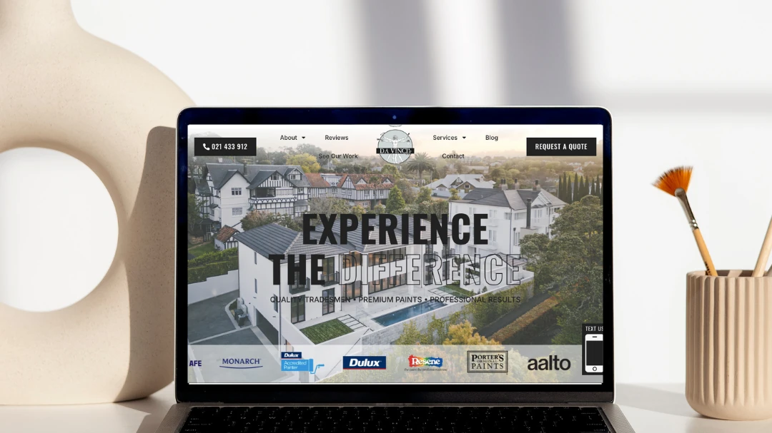 Elevating DaVinci’s Painting’s online identity with a sleek, professional website that showcases their expertise in interior and exterior painting services. The result is a polished, trust‑driven platform that highlights their commitment to quality workmanship, reliability, and transforming spaces with a fresh, appealing finish.
