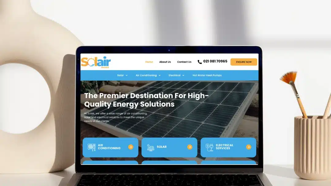 Redefining Solair Electrical’s digital identity with a sleek, forward‑thinking website that mirrors their expertise in solar, air‑conditioning, EV charging, and heat-pump systems through visually compelling and informative layouts. The result: a powerful, user-centric platform that aligns with Solair’s mission to drive clean, efficient energy transformation.